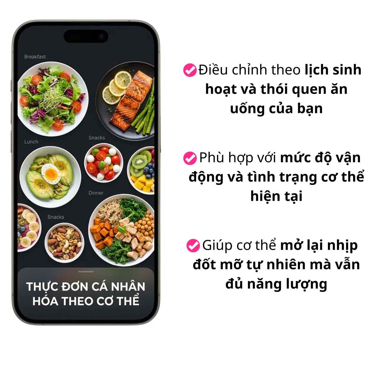 Mục tiêu của chương trình không phải là tạo ra một chế độ ăn kiêng khắc nghiệt, mà là giúp bạn bắt đầu hiểu và điều chỉnh đúng cách để cơ thể giảm mỡ mỗi ngày nhẹ nhàng.