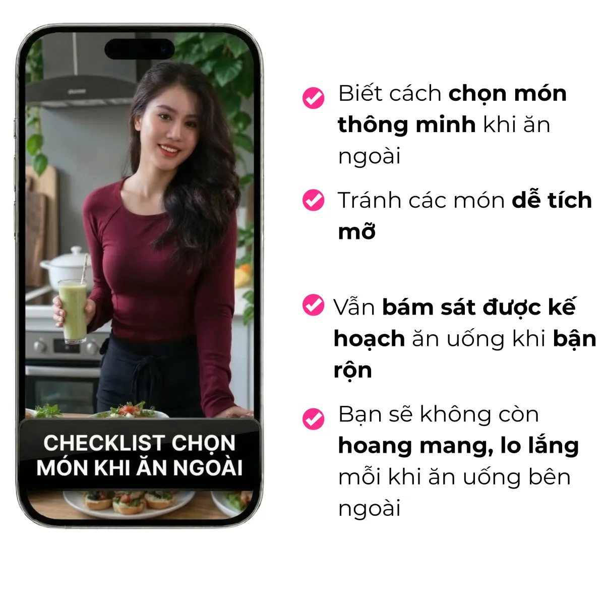 Ngoài ra, bạn cũng sẽ nhận checklist chọn món khi ăn ngoài, giúp bạn dễ dàng áp dụng ngay cả khi